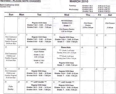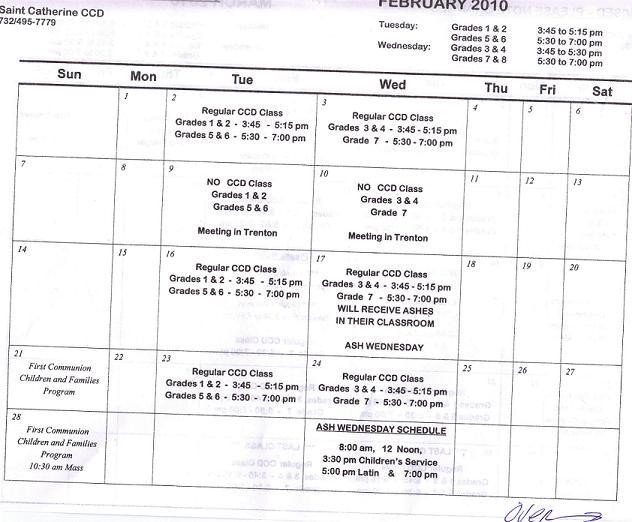 SCHEDULE FOR RELIGIOUS EDUCATION CLASS FOR 2008/2009 SCHOOL YEAR